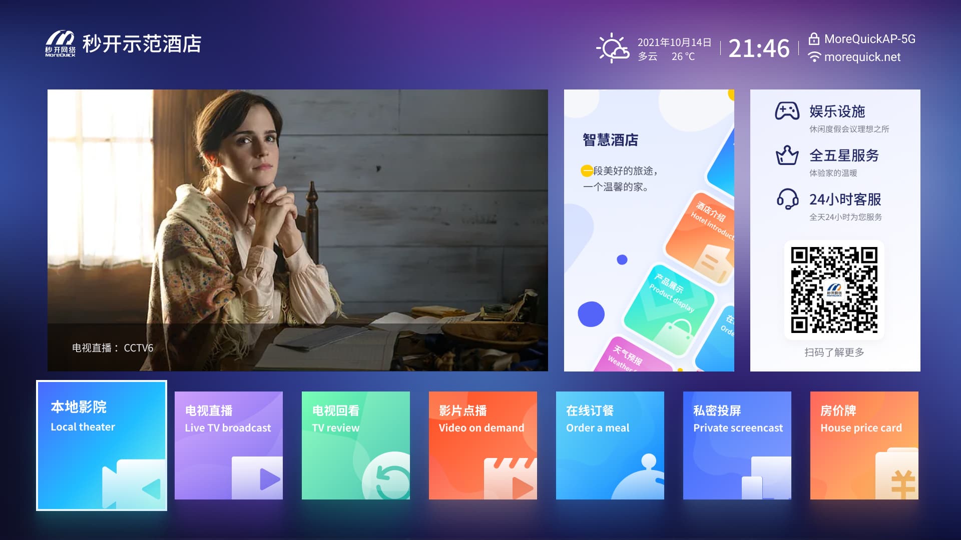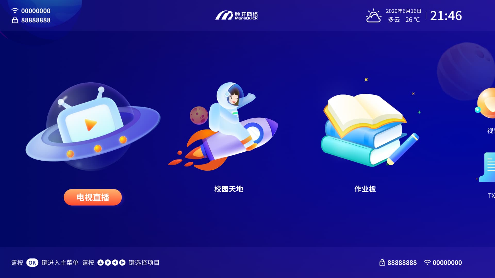 内置根据行业用户场景定制的带行业应用互动电视系统,配置8网口和大内存,满足直播源采集及视频流切片快速分发需求,为用户带来流畅体验。
